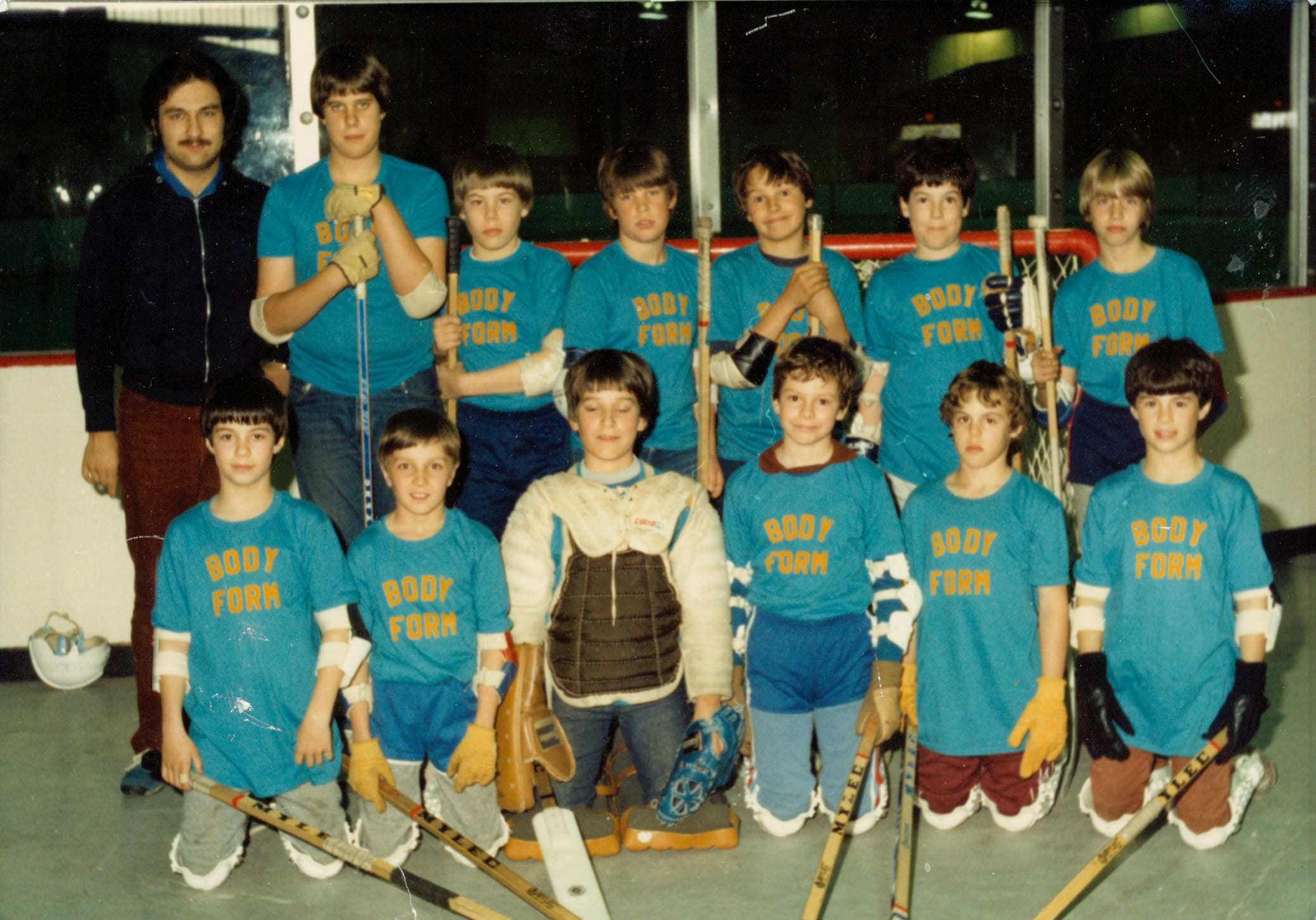 My brother Jay Andrews (goalie) and step-brother Cory Richard (front row, second from right), Gardner Hockey (1984-ish)