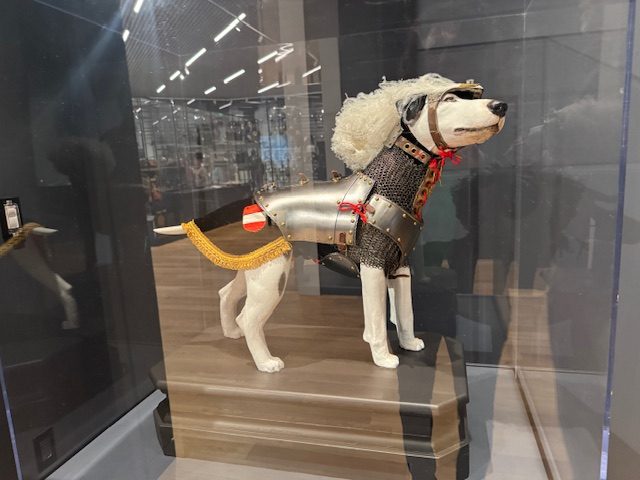 Plus there is also displayed armor from different cultures, such as full suits of samurai armor from early Japan and Sudanese chain mail armor. In fact, there is even armor for jousting horses and hunting dogs on display.